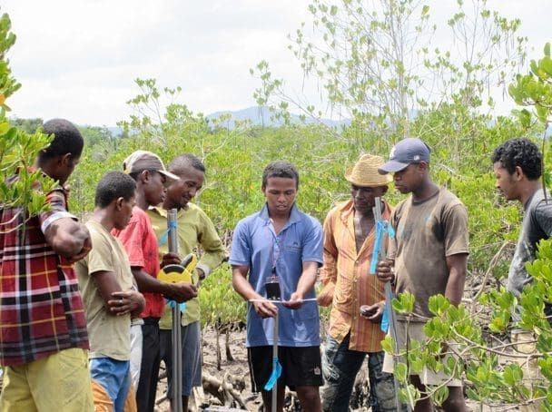 Flash forwards in time to March last year (2018), when a representative from the Government of Madagascar’s Ministry of Environment, Ecology and Forestry visited our sites in northwest Madagascar, accompanied by mangrove experts from the United States Forestry Service. They were designing the national strategy for reducing emissions from deforestation and forest degradation (REDD+), and were interested in using our carbon stock inventory protocol to assess mangroves across the country.