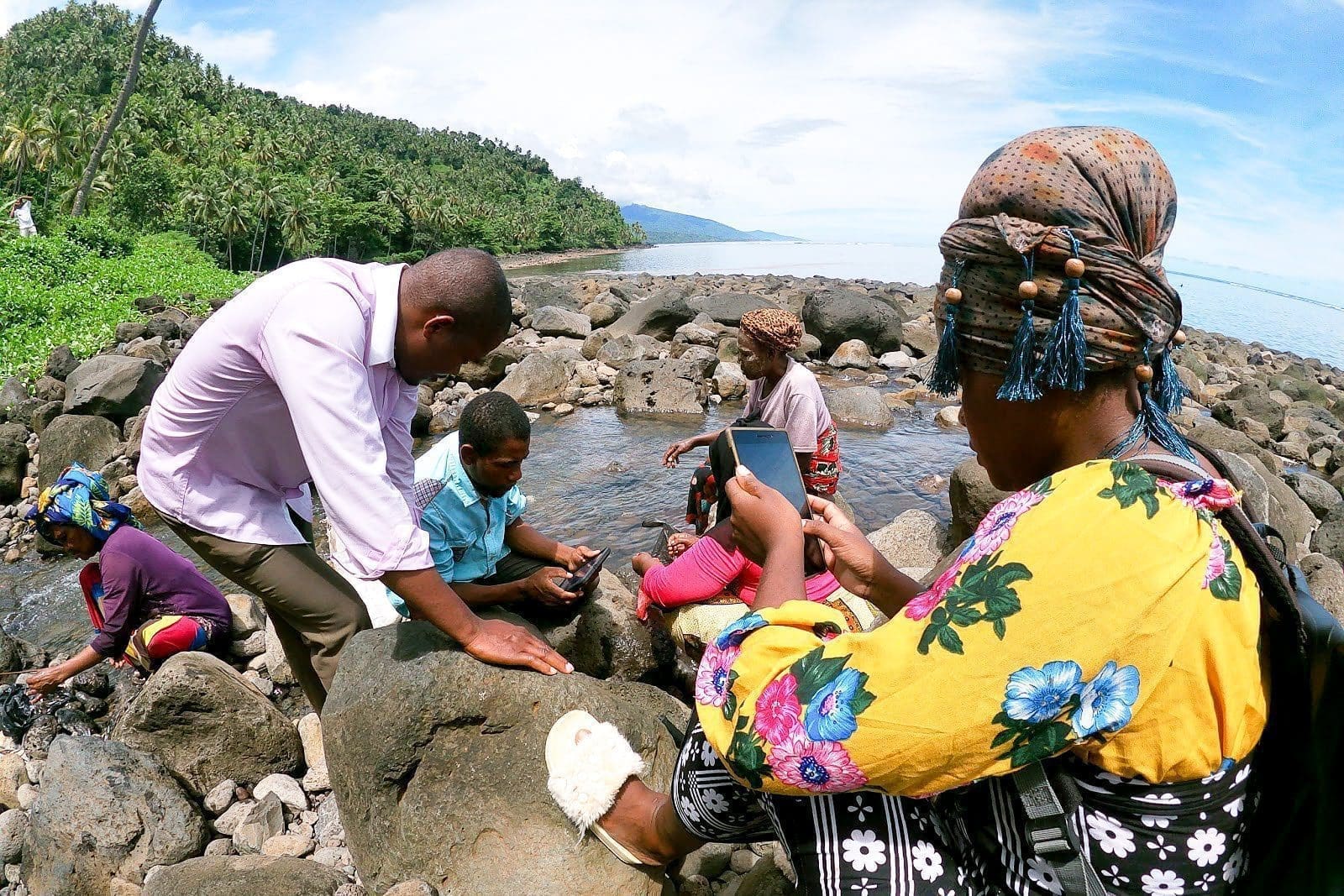 Finally, armed with smartphones, ABALOBI, Blue Ventures and Dahari headed down to the beach to put their efforts to the test. As the tide receded, the fishers, mainly women, descended onto the shoreline with a bucket and mwiri (a wooden stick used for catching octopus) in hand to glean the reef.