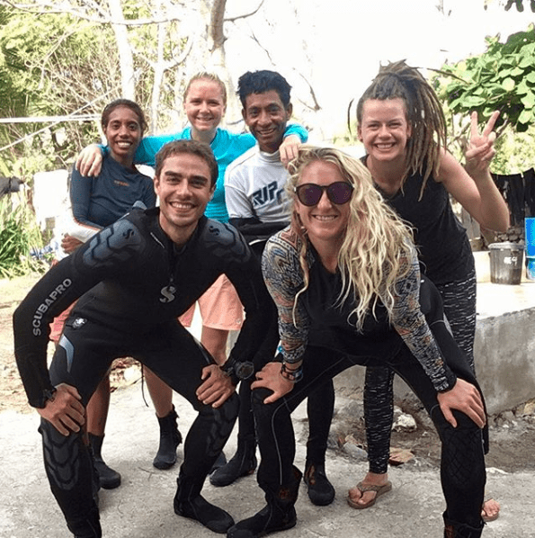 In addition to Laura, our team today includes Sandra, a fellow volunteer, Blue Ventures’ Field Scientist Roxane de Waegh and two Dive and Science Assistants Jemima Gomes and Amos Da Costa. Amos and Jemima, who are both residents of Ataúro Island, are working with Laura to complete a professional divemaster certification—a step that is important to them and their community.