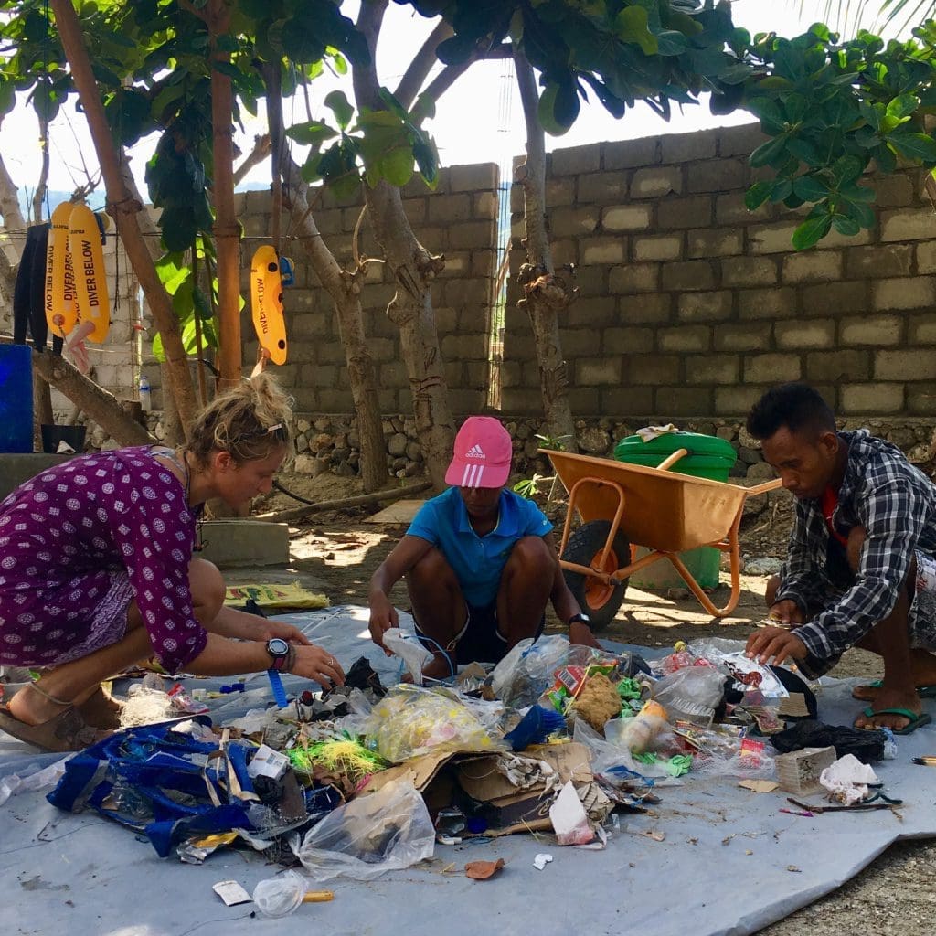 At 3:00 we meet for a weekly beach clean-up. For this, we need bags, gloves, a wheelbarrow, and strong motivation. As everywhere, plastic and other debris can be found on Ataúro’s shores. And plastic doesn’t break down; it only breaks up. Over time, a single plastic bottle can break into over 10,000 pieces of microplastic. We collect and sort the debris and log data for NGO Tangoroa Blue Foundation. It doesn’t seem like a lot, but if everybody contributes a bit, we can make a difference.