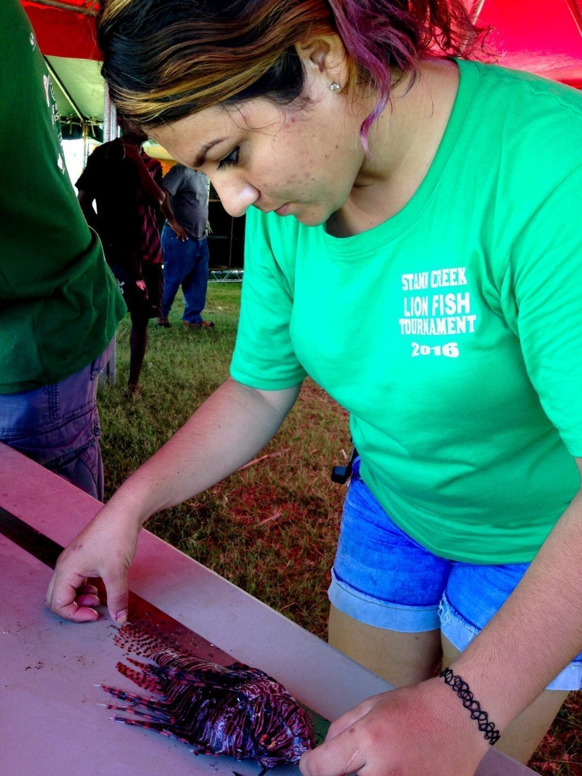 I had never been to Dangriga before nor travelled to the south of my country, but when the day of the tournament arrived, I felt confident because a few women from my village were also coming along to take part in some workshops at the event. It was my first lionfish tournament and I was surprised to see how many people were taking part. This was also my first time collecting data and it felt really good! It was something new, but I wanted to do it. Wanting is power and if you have the power to do something, you can do it.