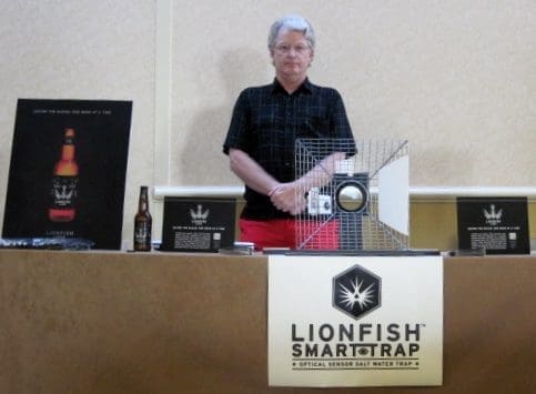 David Johnson, founder and CEO of Traditional Fisheries, presents his prototype lionfish smart trap; he plans for the trap to learn to recognise the silhouette of a lionfish, thereby limiting bycatch. The benefits of developing a lionfish-specific trap is that it could be deployed beyond recreational dive limits, where lionfish are bigger and more abundant. (Photo credit: Traditional Fisheries)