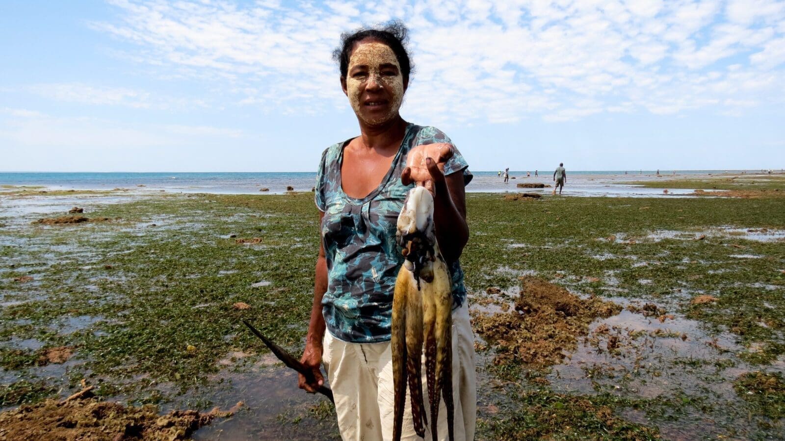 Il y a encore quelques années, peu de personnes pêchaient le poulpe dans les îles Barren : le stock est plus réduit que dans le sud du pays, et quand les femmes des îlots (qui pêchent à pied à marée basse) avaient l’occasion d’en attraper, il n’y avait pas de collecteur pour leur acheter et partir les vendre aux villes de la côte.