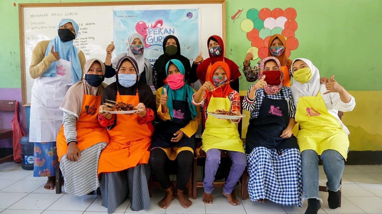 Para ibu dari Poto Tano juga sangat senang mempelajari cara menyiapkan takoyaki—kudapan