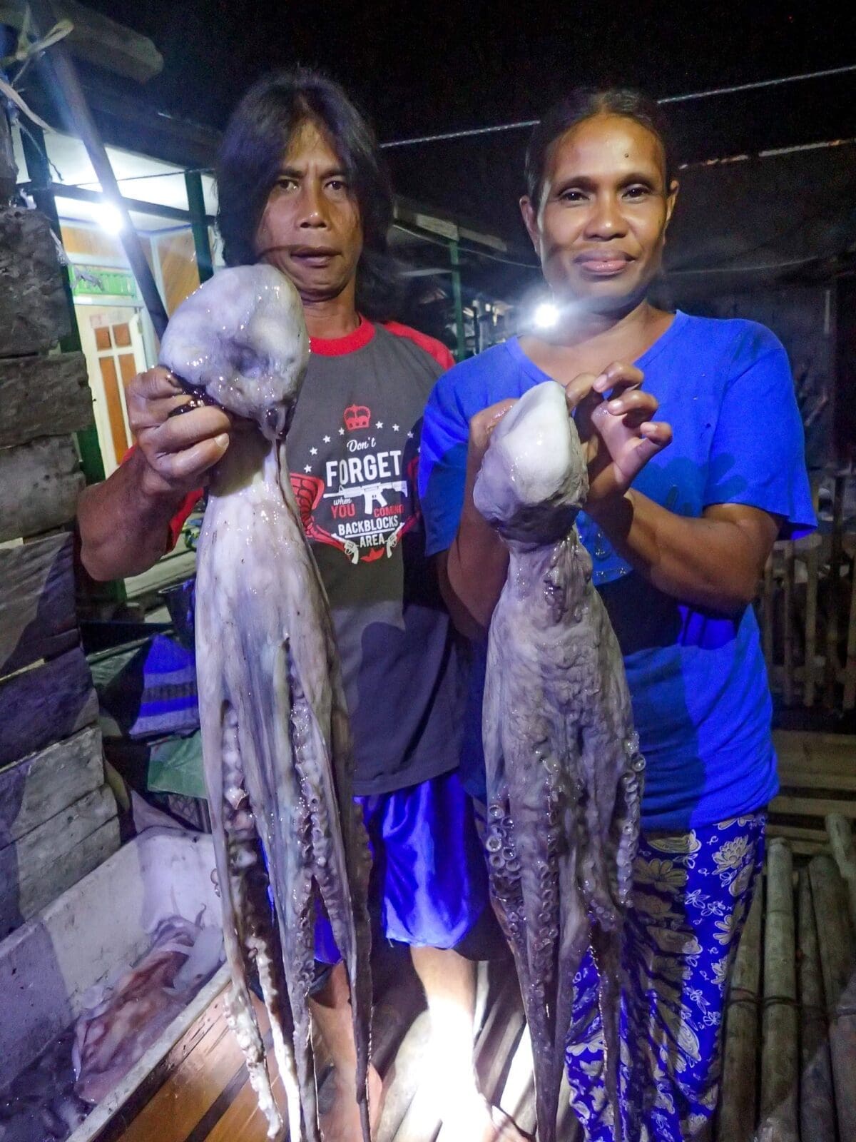 Dulu, seorang nelayan bisa menangkap lebih dari 20 gurita sekali melaut dengan berat rata-rata lebih dari dua kilogram, bahkan beberapa ada yang beratnya mencapai lima kilogram. Sekarang, ukuran gurita yang tertangkap lebih kecil dan sulit sekali mendapatkan hasil tangkapan sebanyak dulu,” jelas Aswadi Sahari.