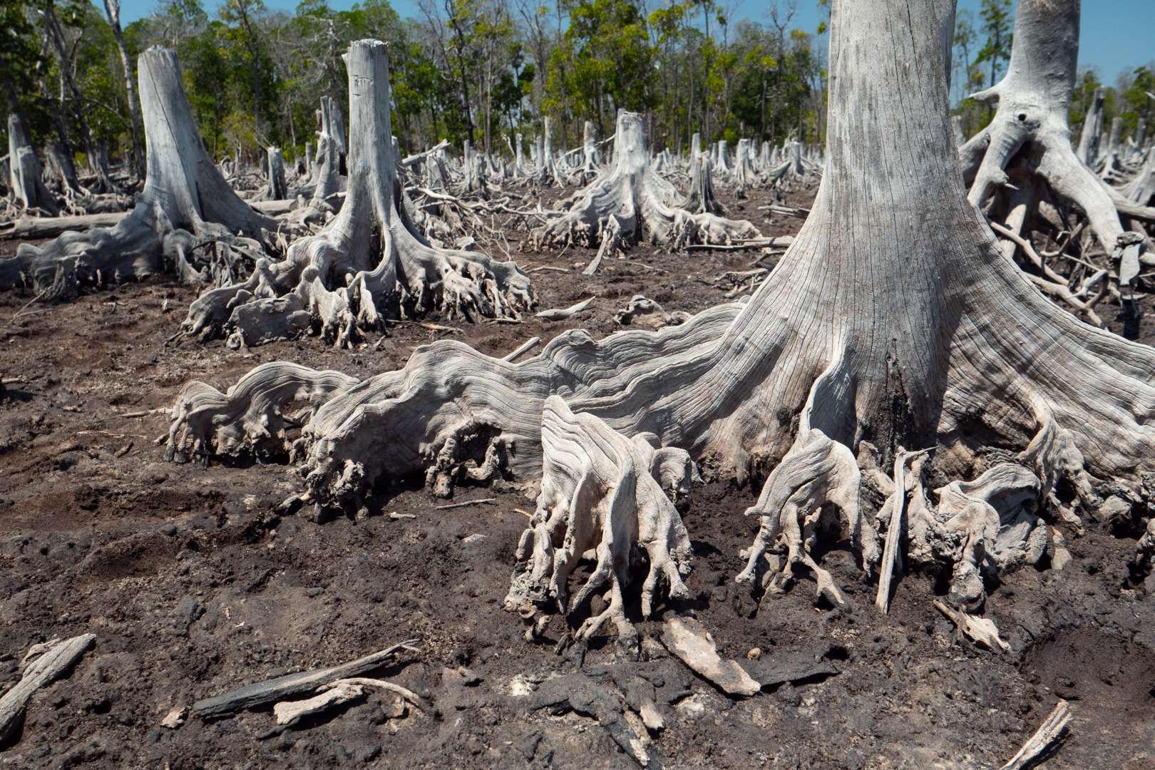 Ms. Alphine inspects a cut mangrove tree whilst on patrol